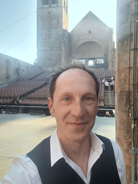 Peter im Backstage, bei der letzten Vorstellung in der Stiftsruine Bad Hersfeld.
