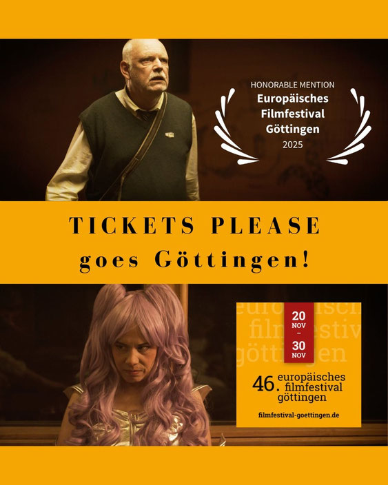 Außerdem wird "Tickets Please" als Honorable Mention außerhalb des Wettbewerbs beim 46. Europäischen Filmfestival Göttingen gezeigt. Das genaue Screening-Datum dazu wird noch bekannt gegeben.
